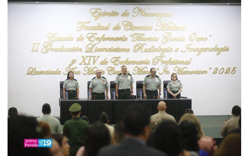 En una ceremonia que se realizó en el Auditorio del Estado Mayor Cmdte. Carlos Rafael Agüero Echeverría, el Ejército de Nicaragua celebró la II Graduación de Licenciatura en Radiología e Imagenología y la XIV de Enfermería Profesional.