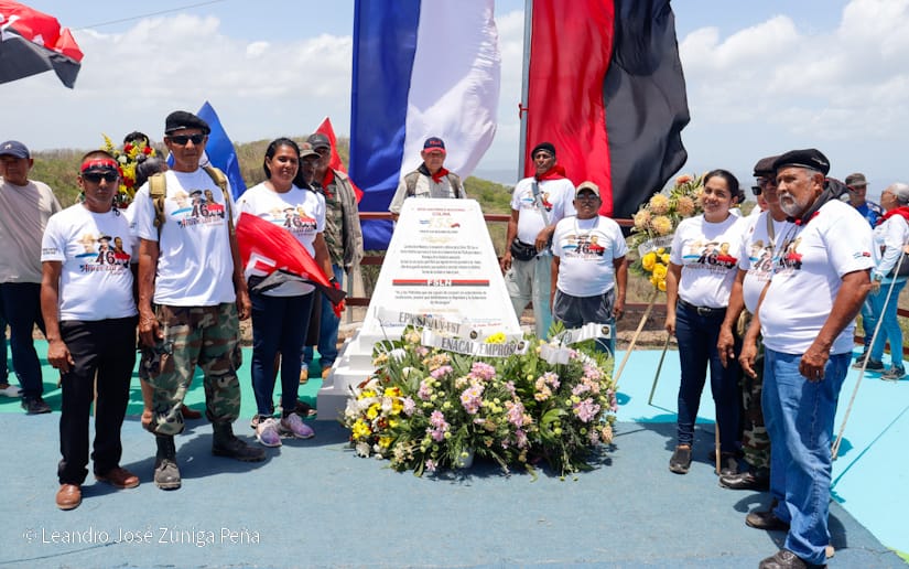 La militancia sandinista llegó hasta el sitio donde los guerrilleros revolucionarios defendieron la paz y la soberanía del pueblo, y donde colocaron ofrendas florales en el monumento en homenaje a sus hermanos caídos en combate.