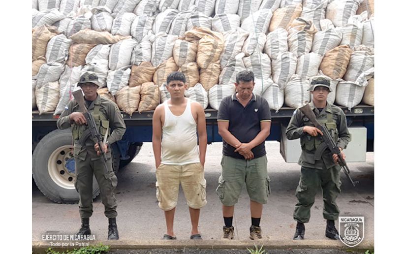 De igual manera, en el Puesto Militar de Control Forestal del municipio de Mulukukú, se retuvo a los ciudadanos nicaragüenses, Carlos José Castellón de 50 años de edad y Pablo Josué Artola de 21 años de edad, a quienes se les ocuparon 400 sacos con material mineral (brosa), la que era trasladada de manera ilegal a bordo de 1 camión placa M 427459.