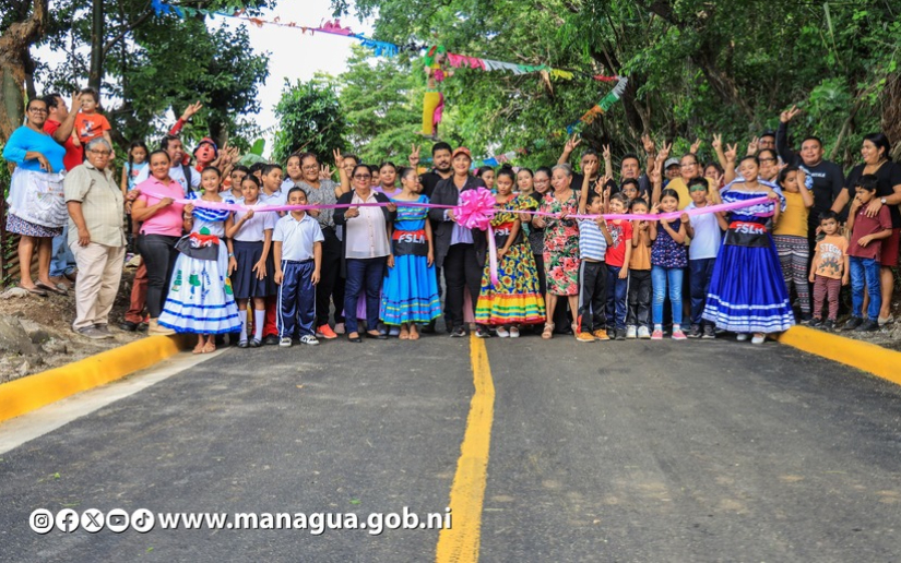 La Alcaldía de Managua inauguró en la comarca La Hoyada del Distrito 1, 6.5 cuadras pavimentadas que permiten mejores condiciones de vida y conectividad a más de 120 familias que hoy cumplen su sueño de contar con calles dignas.