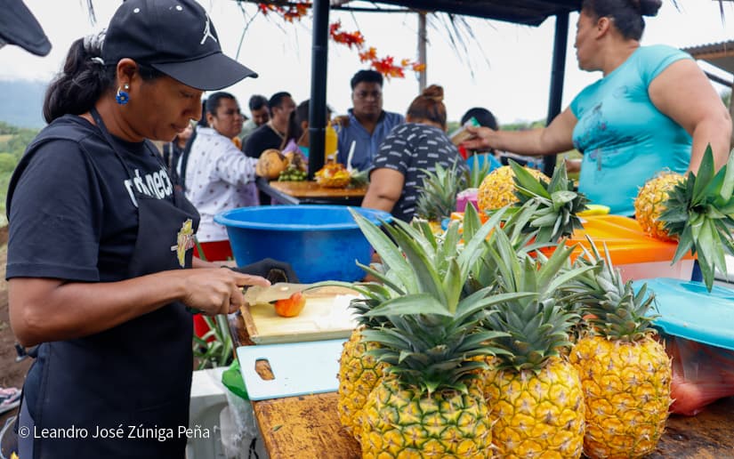 "La idea nació de mi pareja y yo que estábamos conversando y queríamos darles un valor agregado debido a que la piña, el cultivo, se desperdicia porque está aún a bajo precio, entonces quisimos darle un valor agregado a la piña y ofrecer también el conocimiento de la piña", explicó Luisa Ramírez.
