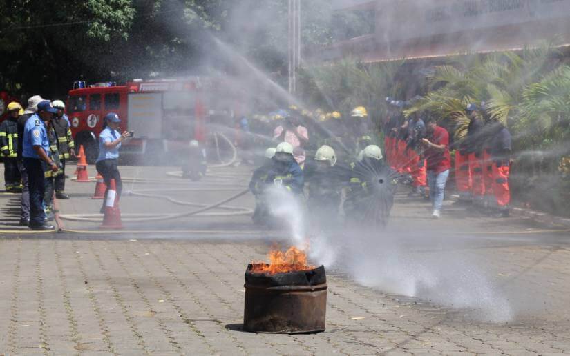 Los nuevos miembros se forman durante cinco meses en la Academia Nacional de Bomberos, ubicada en Managua, donde se llevó a cabo la demostración.