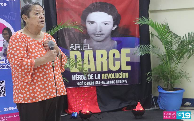 El director del Centro Tecnológico Ariel Darce, Jairo Sáenz, expresó que Ariel es un joven, héroe de esta patria, que a temprana edad inició la lucha contra la dictadura somocista.