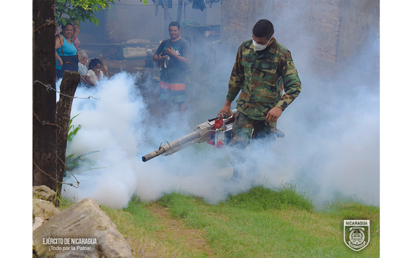 El Ejército de Nicaragua consecuente con el lema de que “Somos el Pueblo mismo uniformado trabajando en su propio beneficio”, el 3 y 4 de julio de 2025, a través del 4 Comando Militar Regional, en coordinación con el Ministerio de Salud (MINSA), participó en jornada de fumigación en diferentes barrios del municipio de San Juan del Sur, departamento de Rivas, con el objetivo de eliminar criaderos de mosquitos transmisores del dengue y otras enfermedades.