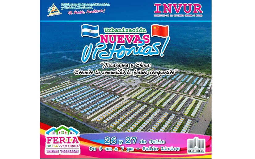 El Gobierno de Reconciliación y Unidad Nacional, a través del INVUR invita a las familias nicaragüenses a la Feria de la “Urbanización Nuevas Victorias”, para facilitar a las familias el acceso a la primera Fase de 920 viviendas, construidas con la cooperación del Pueblo y Gobierno de la República Popular China.
