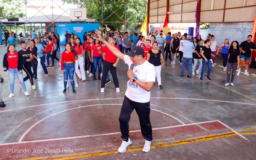 Previo a la celebración del 46 aniversario de la Revolución Popular Sandinista, los docentes y estudiantes de los centros tecnológicos de Managua, protagonizaron el Mega Zumbatón “Bailando por la Paz” desde las instalaciones del Centro Tecnológico Manuel Olivares.
