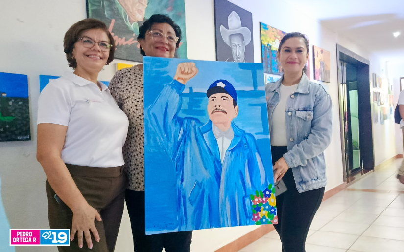 Más de 150 personas forman parte de los distintos cursos de pintura que se imparten en la Casa de Cultura Otto de la Rocha, estos protagonistas dedicaron sus obras a los Héroes y Mártires de la Revolución, al Comandante Daniel y a la Compañera Rosario Murillo, por eso se pueden apreciar rostros del Comandante Tomás Borge, del General Augusto C. Sandino, del comandante Carlos Fonseca Amador, así como pinturas que reflejan el momento cuando las distintas columnas de guerrilleros ingresaron a la Plaza de la Revolución declarando a Nicaragua como una Patria Libre.