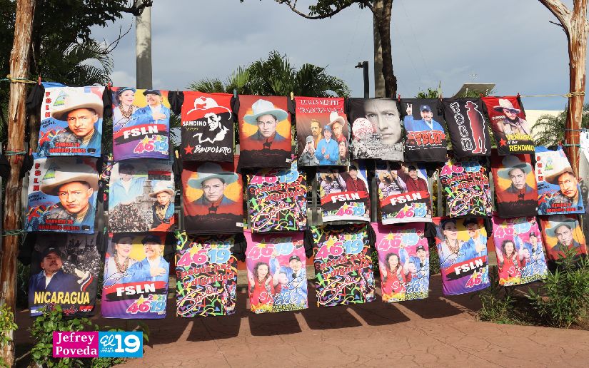 "Tenemos al Comandante, camisas con Tomás Borge, camisas con Sandino. Tenemos bastantes camisas, una gran variedad y tallas especiales, hasta las más grandes tipo 5XL", dijo.