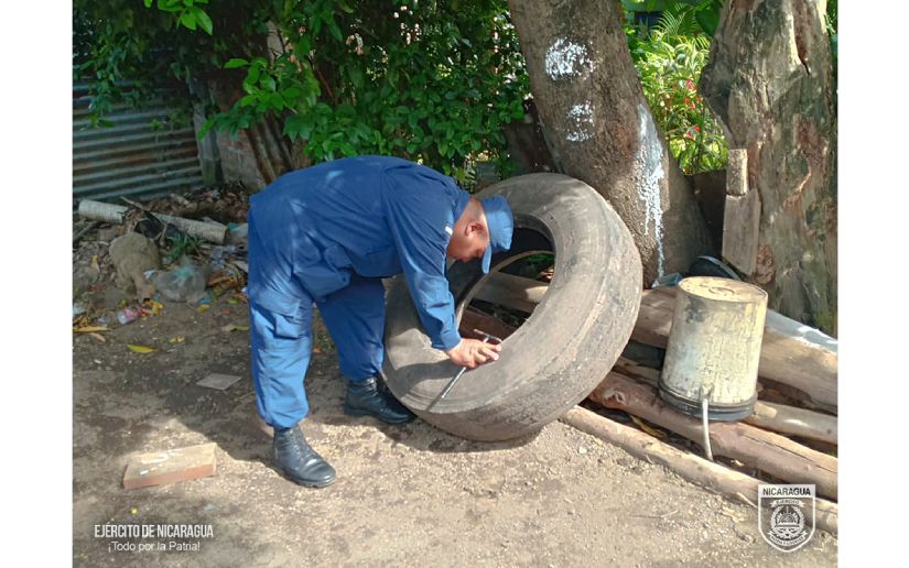 El Ejército de Nicaragua consecuente con el lema de que “Somos el Pueblo mismo uniformado trabajando en su propio beneficio”, el 12 de julio de 2025, a través del Destacamento Naval de Aguas Interiores “Comandante Hilario Sánchez Vásquez” de la Fuerza Naval, en coordinación con el Ministerio de Salud (MINSA), participó en jornada de abatización, en el municipio de Moyogalpa, isla de Ometepe, departamento de Rivas, con el objetivo de eliminar criaderos de mosquitos transmisores del dengue y otras enfermedades.