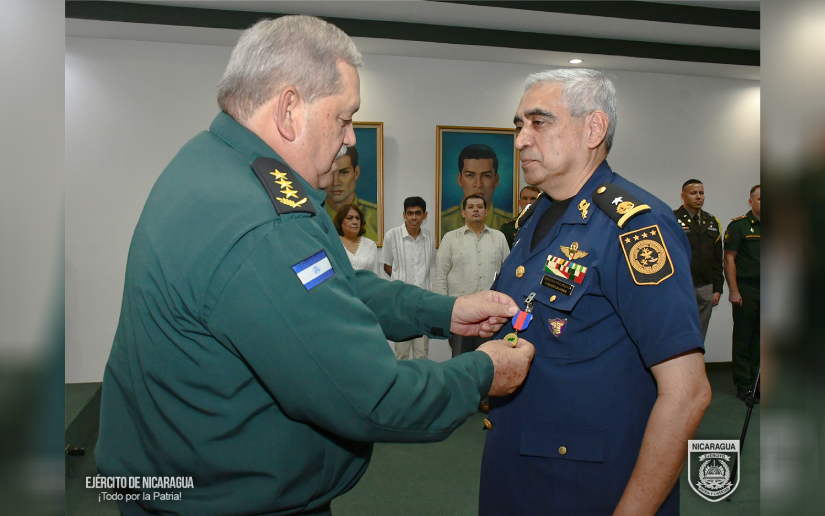 El Ejército de Nicaragua consecuente con el lema de que “Somos el Pueblo mismo uniformado trabajando en su propio beneficio”, el 15 de julio de 2025, en el Auditorio de la Comandancia General “Hermanos David y René Tejada Peralta”, por orden N° 036/2025, del Comandante en Jefe de las Fuerzas Militares del Ejército de Nicaragua, General de Ejército Julio César Avilés Castillo, el Jefe del Estado Mayor General, Coronel General Bayardo Ramón Rodríguez Ruiz, impuso la condecoración “Medalla Honor al Mérito Amistad y Cooperación”, al Agregado Militar y Aéreo a la embajada de los Estados Unidos Mexicanos, General de Grupo Piloto Aviador Estado Mayor Jorge Arredondo Abitia, en reconocimiento a los lazos de amistad y cooperación con el Ejército de Nicaragua.