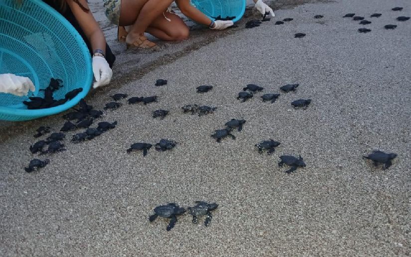 En armonía con el ciclo natural de nuestras tortugas marinas, Guardas de áreas de conservación ambiental del Ministerio del Ambiente y de los Recursos Naturales, MARENA, junto a turistas liberaron 384 tortuguillos de la especie Paslama en el Refugio de Vida Silvestre Río Escalante Chacocente, ubicado en el municipio de Santa Teresa, Carazo.