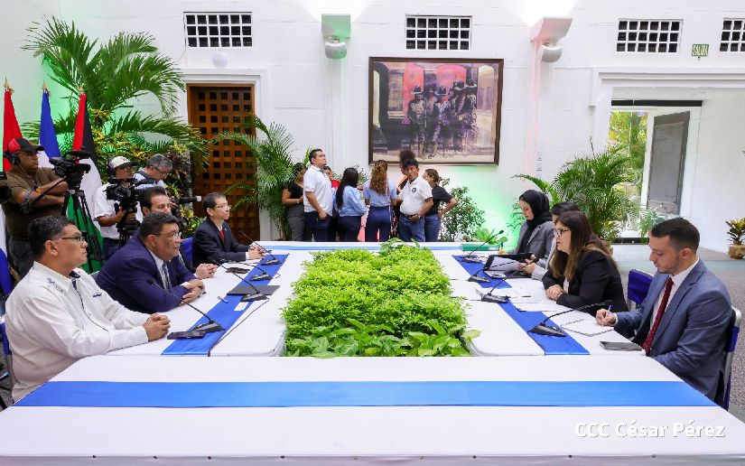 El Canciller de Nicaragua, compañero Valdrack Jaentschke, sostuvo un encuentro con la Dra. Varsen Aghabekian Shahin, Ministra de Asuntos Exteriores y Expatriados del Estado de Palestina, quien se encuentra de visita en el país con motivo de la celebración del 46 aniversario del Triunfo de la Revolución Popular Sandinista.