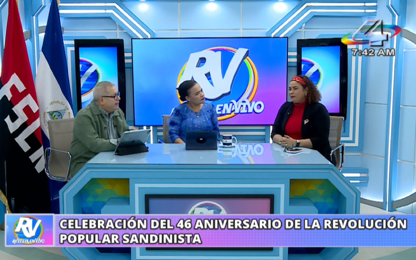 La alcaldesa de Managua, compañera Reyna Rueda, participó en la entrevista central de la Revista en Vivo de canal 4, donde expuso los avances de la Revolución al cumplirse 46 años del triunfo del Frente Sandinista de Liberación Nacional.
