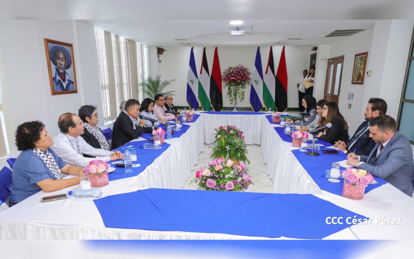 Como parte de la visita que realiza a Nicaragua en el marco del 46/19, la Delegación del Estado Palestino, presidida por la Dra. Varsen Aghabekian Shahin, Ministra de Relaciones Exteriores, este mediodía fue recibida por el Presidente de la Asamblea Nacional, Dr. Gustavo Porras; la Primera Vicepresidenta del Legislativo, diputada Arling Alonso, así como diputados y diputadas del Grupo Parlamentario de Amistad Nicaragua-Palestina.