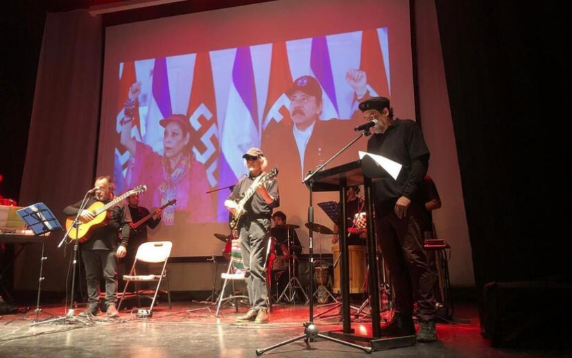 El Acto, el cual fue presentado por la Compañera Valentina Lowyck y el compañero Giovanni Rodríguez, se complementó con videos en los que se pudieron apreciar los Logros en Salud, Infraestructura que Nicaragua ha alcanzado en la actualidad. La nota artística, estuvo a cargo de cantautores como el psicotrovador Fernando López (FLOPY), la trovadora Alejandra Acuña, el Grupo Abya Yala y su Cantata de los Pueblos y el artista Marcos Brachitta. Al finalizar, se disfrutó de un refrigerio, el cual fue auspiciado por los hermanos y hermanas de la Solidaridad. Fue un Acto pleno de Hermandad Nuestramericana, de reafirmación, compromiso y tributo a nuestra Gloriosa e Invicta Revolución Popular Sandinista, que ha construido un Modelo Propio, Digno, Soberano y Emancipador.