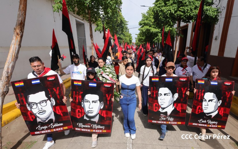 En conmemoración del 66 aniversario del tránsito a la inmortalidad de los Héroes y Mártires del 23 de julio de 1959 en León, la comunidad universitaria, Juventud Sandinista, Policía Nacional, autoridades municipales y políticas y Militancia Sandinista recordaron el legado heredado y les rindieron homenaje con recorrido de la antorcha de la libertad, ofrendas florales y guardia de honor.