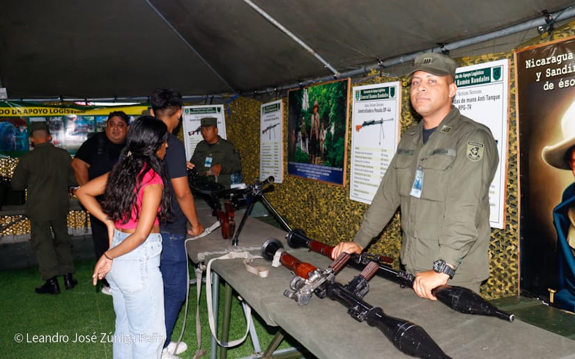 La exposición estática, medios y equipos militares del Ejército de Nicaragua, que se instaló en la Plaza la Fe, en Managua, está siendo visitada por las familias nicaragüenses que desean conocer el trabajo castrense.