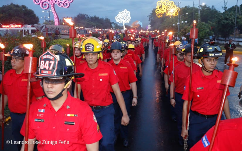 El recorrido inició en la Plaza La Fe, donde se encendieron las antorchas como símbolo del compromiso, entrega y valentía que caracteriza a esta institución. Las sirenas, luces y vehículos desfilaron por las principales calles de Managua, culminando en la Estación Central.