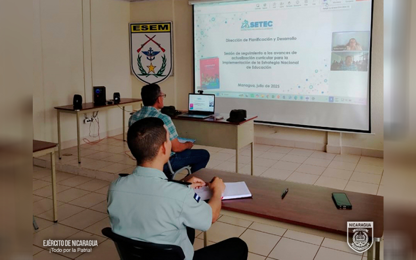 En cumplimiento a orden del Comandante en Jefe de las Fuerzas Militares del Ejército de Nicaragua, General de Ejército Julio César Avilés Castillo, de avanzar en la mejora continua del proceso educativo en la Universidad de Defensa de Nicaragua “4 de mayo” (UDENIC), el 25 de julio de 2025, se participó en reunión virtual con la Secretaría Técnica para Atención a las Universidades (SETEC), con el objetivo de dar seguimiento a la actualización curricular de las carreras y programas académicos, en el marco de la segunda fase de implementación de la Estrategia Nacional de Educación “Bendiciones y Victorias” 2024-2026.