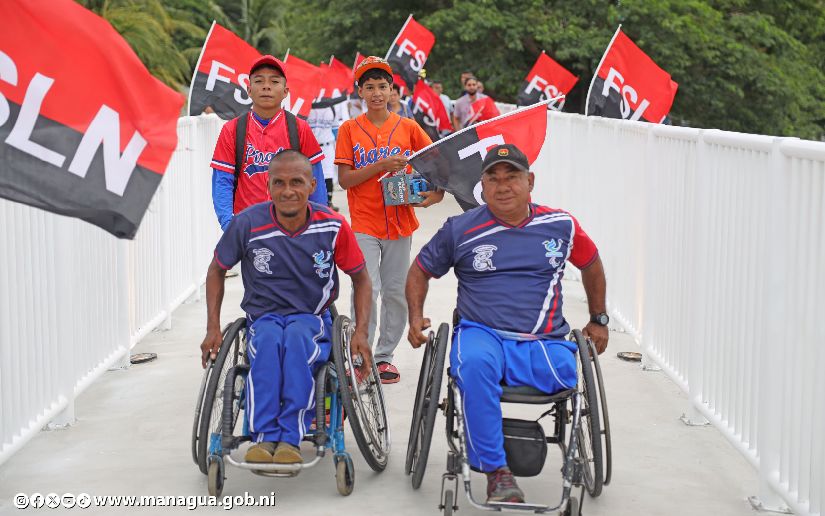 La Alcaldía de Managua entregó este martes a los deportistas que a diario visitan el Instituto Nicaragüense de Deportes y pobladores de sus alrededores un puente peatonal de 28.98 metros de largo, con una altura de 8.14 metros, ubicado en la Avenida 25 Calle.