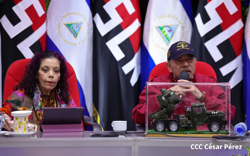 "Y todos ustedes compañeros de la Fuerza Aérea y Defensa Antiaérea están hechos de ese barro, están hechos de ese acero. Cuántos nicaragüenses murieron solo en la etapa en la lucha contra Somoza y después de la lucha contra la intervención yanqui que encabezó Ronald Reagan, más de 100 mil nicaragüenses y aunque los combatientes veían caer a un compañeros no huían, seguían combatiendo y por eso fue posible que con el alma, la fortaleza de los hermanos cachorros entonces, soldados del Ejército se logró en una guerra, fue una guerra de 10 años enfrentados a los Estados Unidos, con el presidente de los Estados Unidos amenazando, armando, entrenando, agrediendo y al final fueron derrotados, al final de los 10 años", recordó.