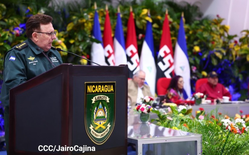 Agregó: "46 años, de los cuales miles de hermanos han dado sus mejores esfuerzos y muchos su vida en el proceso de fundación, desarrollo y el cumplimiento de múltiples tareas en beneficio de nuestro pueblo. Los miembros del Ejército de Nicaragua nos sentimos orgullosos de tener estos hermanos de armas firmemente comprometidos en la defensa de los sagrados intereses de nuestra patria, por ello quiero, en nombre de la Comandancia General del Consejo Militar y de todos los que integramos el Ejército de Nicaragua, expresarles las merecidas felicitaciones y sobre todo el reconocimiento por su excelente desempeño para servirle a todos los nicaragüenses sin distingo de ninguna naturaleza".