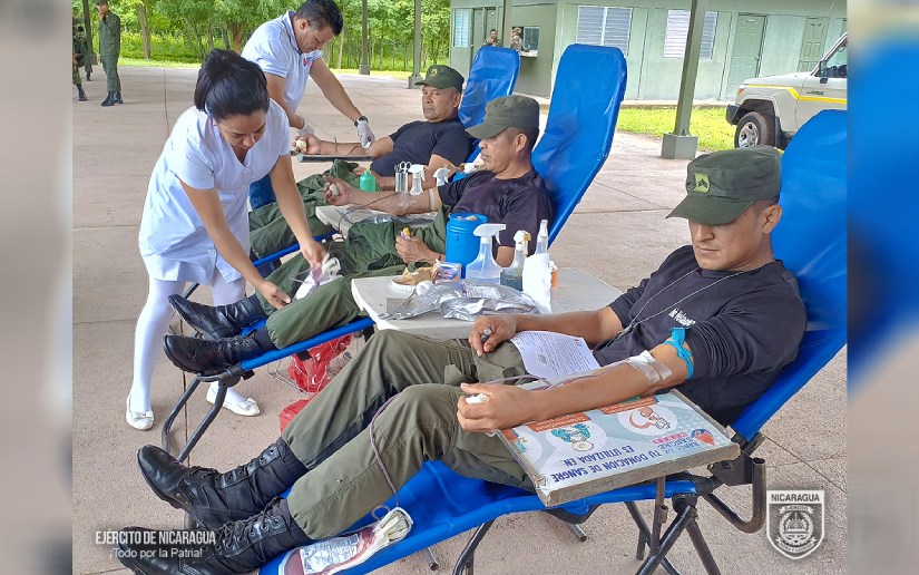 El Ejército de Nicaragua consecuente con el lema de que “Somos el Pueblo mismo uniformado trabajando en su propio beneficio”, el 29 de julio de 2025, a través del 1 Comando Militar Regional, en coordinación con el Banco Regional de Sangre del departamento de Estelí, participó en jornada de donación voluntaria de sangre.