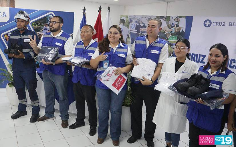 “Esta entrega consiste en camisas, pantalones para el personal administrativo y gabachas industriales, pantalones y botas para el personal de mantenimiento, gabachas clínicas para el personal que atiende el área de exámenes y en el caso del personal de ambulancias se les está entregando botas, pantalones y chaquetas operativas, debidamente identificados con los logos de la institución”, refirió Denis Centeno, director general de Cruz Blanca.