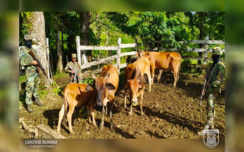 El Ejército de Nicaragua consecuente con el lema de que “Somos el Pueblo mismo uniformado trabajando en su propio beneficio”, el 13 de agosto de 2025, a través de servicio operativo del 5 Comando Militar Regional, en la comunidad Cerro Grande, municipio de El Ayote, Región Autónoma de la Costa Caribe Sur, ocupó 10 semovientes, que eran trasladados de manera ilegal por un sujeto, el que al detectar la presencia de las tropas se dio a la fuga.