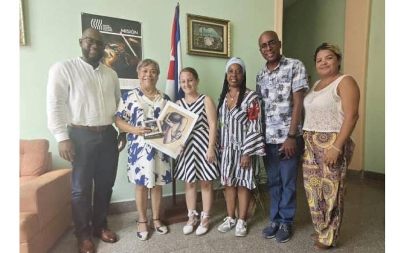 La Presidenta del Centro, Compañera Lilliam Mendoza Estrada y su equipo de trabajo, nuestra Embajadora en Cuba, Compañera Guisell Morales Echaverry y el Ministro Consejero de esta Misión Diplomática, Compañero Glenn Cuthbert, sostuvieron un productivo diálogo en el que acordaron realizar presentaciones de música nicaragüense interpretada por artistas de la Isla de las Islas, como la llamara nuestro Príncipe de las Letras Castellanas, en fechas significativas para ambas Naciones, iniciando con un concierto dedicado a celebrar en Cuba, a la Patria Bendita y Libre, honrar nuestra Independencia, Soberanía y Dignidad, el Honor y la Gloria de la Batalla de San Jacinto.