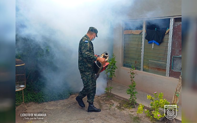 El Ejército de Nicaragua consecuente con el lema de que “Somos el Pueblo mismo uniformado, trabajando en su propio beneficio”, del 4 al 15 de agosto de 2025, a través del 1 Comando Militar Regional, en coordinación con el Ministerio de Salud (MINSA), participó en jornada epidemiológica en los municipios de San Juan de Limay, Estelí, departamento de Estelí, municipio de Palacagüina, departamento de Madriz y municipio de Ocotal, departamento de Nueva Segovia con el objetivo de eliminar criaderos de mosquitos transmisores del dengue y otras enfermedades.