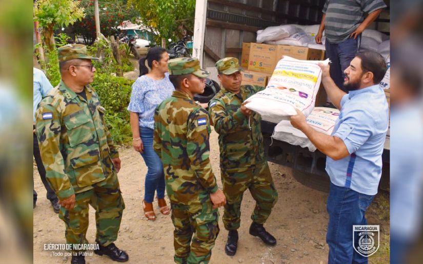El Ejército de Nicaragua consecuente con el lema de que “Somos el Pueblo mismo uniformado trabajando en su propio beneficio”, el 20 de agosto de 2025, a través del 6 Comando Militar Regional, en coordinación con la delegación municipal del Ministerio de Educación (MINED), participó en el descargue de 3,417.5 quintales de alimentos (arroz, frijoles, cereal y maíz) y 11,324 litros de aceite, en las bodegas del centro escolar “El Naranjo ” y del Instituto Nacional “Augusto C Sandino”, del municipio de Jinotega, departamento de Jinotega, los que posteriormente serán distribuidos en 236 centros escolares, beneficiando a 24,000 estudiantes.
