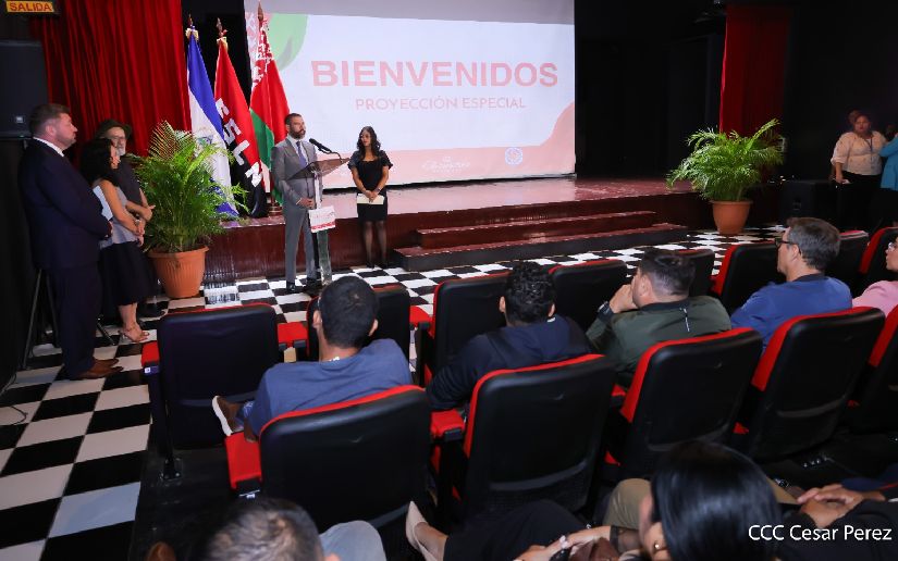 Esta actividad se llevó a cabo en el marco de la visita del compañero Vitali Barchuk, Embajador de la República de Belarús, también asistió el compañero Laureano Ortega Murillo, Asesor para Inversiones, Comercio y Cooperación Internacional de la Presidencia de la República y los codirectores de la Cinemateca Nacional, Idania Castillo y Adrián Carrasco.