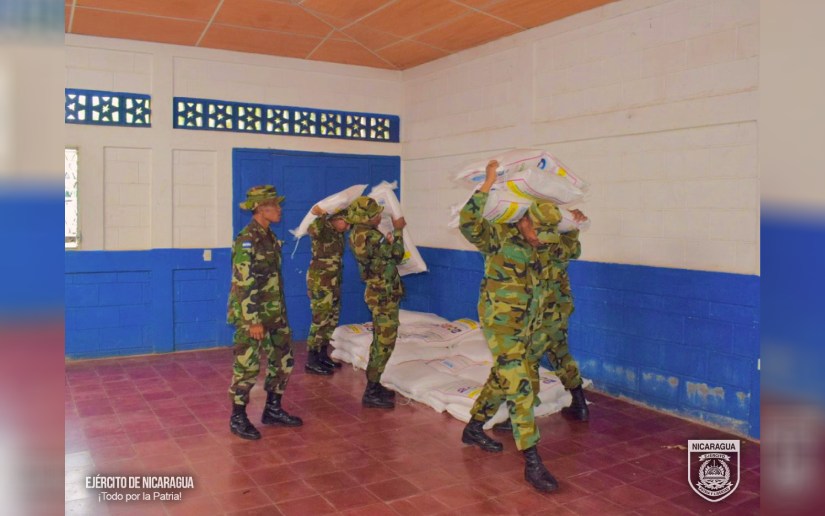 El Ejército de Nicaragua consecuente con el lema de que “Somos el Pueblo mismo uniformado trabajando en su propio beneficio”, el 27 de agosto de 2025, a través del 5 Comando Militar Regional, en coordinación con el Ministerio de Educación (MINED), participó en el cargue de 68 quintales de alimentos (arroz, frijoles, maíz, cereal) y 249 litros de aceite, en la Escuela Especial “Padre Miguel Gonfia Lazari”, posteriormente, se trasladó al Centro Escolar Pablo Hurtado del municipio de Juigalpa, departamento de Chontales, donde se realizó el descargue, beneficiando a 383 alumnos.