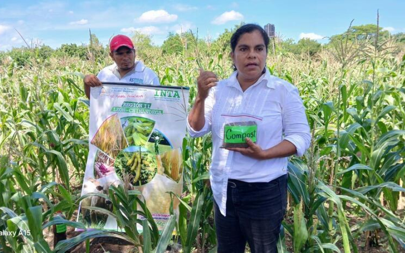 El INTA desde La Comunidad Santa Rosa, del municipio de Quezalguaque, Departamento de León, presentó los resultados de producción en parcelas de Maíz, haciendo uso de fertilizantes orgánicos, con la participación de productores de granos básicos de la zona.