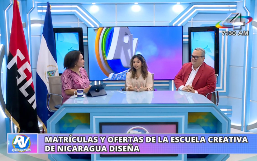 Durante la emisión de Revista en Vivo de canal 4, de este viernes 29 de agosto, los compañeros Fernando Fuentes, coordinador académico de Nicaragua Diseña y Shayrol Lara, responsable de marketing de la Escuela Creativa, compartieron la oferta educativa para los interesados en entrar al mundo de la moda, el diseño, y la creatividad que impulsa la plataforma.