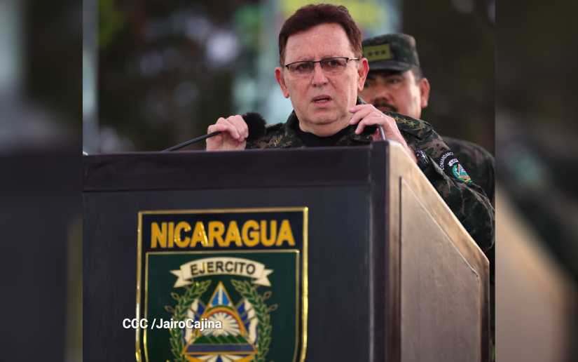 “Honor y gloria al heroico pueblo, honor y gloria a nuestros héroes y mártires, honor y gloria a nuestros héroes nacionales, General José Dolores Estada, General Benjamín Zeledón, General Augusto C. Sandino. Viva el 46 aniversario del Ejército de Nicaragua, en cumplimiento de nuestras misiones y tareas, en defensa de la patria y la institución, viva el Ejército de Nicaragua”, finalizó.