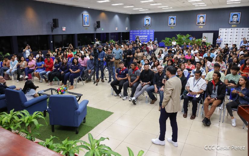 El compañero Óscar Pérez, del Consejo Nacional de Juventud Sandinista 19 de Julio, expresó a los expositores el placer y orgullo de tenerlos en la UNAN-Managua, así como a los estudiantes de Comunicación.