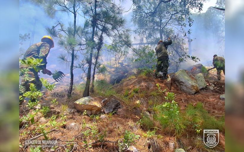 El Ejército de Nicaragua consecuente con el lema de que “Somos el Pueblo mismo uniformado, trabajando en su propio beneficio”, el 7 de septiembre de 2025, a través del 1 Comando Militar Regional, en coordinación con instituciones del Estado, participó en sofocación de incendio forestal en la finca Las Porras, comunidad Las Tablas y finca La Sirena en la comunidad La Sirena, municipio de San Nicolás, departamento de Estelí, logrando extinguir el fuego en un área de 150 manzanas de bosque madera de Pino y Roble Encino.