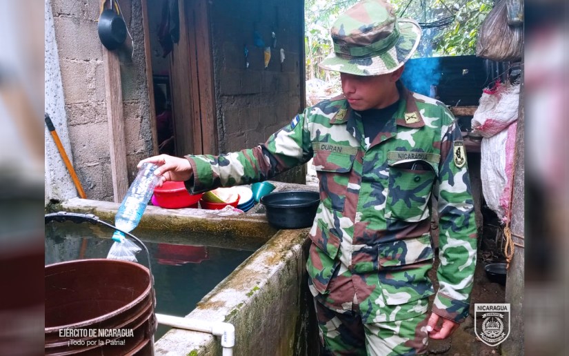 El Ejército de Nicaragua consecuente con el lema de que “Somos el Pueblo mismo uniformado trabajando en su propio beneficio”, el 9 y 10 de septiembre de 2025, a través del 5 Comando Militar Regional, en coordinación con el Ministerio de Salud (MINSA), participó en jornada de abatización en la comunidad de Wapi, municipio de El Rama, Región Autónoma de la Costa Caribe Sur, con el objetivo de eliminar criaderos de mosquitos trasmisores del dengue y otras enfermedades.
