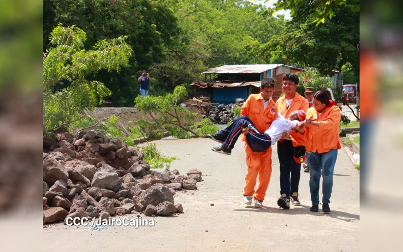 Las brigadas locales junto al Ejército de Nicaragua identificaron a los heridos que fueron rescatados y puestos bajo atención médica; así se pone en práctica los planes locales y familiares de protección a la vida.
