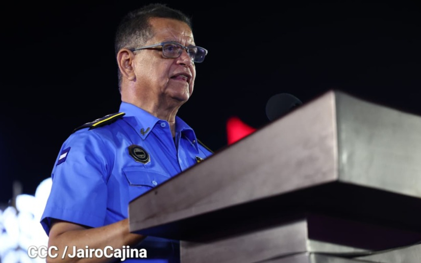 El Jefe de las Fuerzas Policiales, reafirmó que la misión de de la Policía Nacional es proteger, resguardar y defender la paz, garantizando la seguridad y desarrollo de las familias nicaragüenses.
