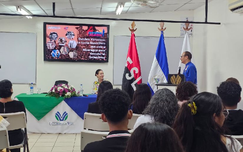 “Estamos en un ciclo de conferencias de unidad nacional. La Presidencia de la República, las universidades privadas, la Asamblea Nacional, el Pueblo Presidente, en este caso, la Universidad del Valle, estamos dialogando y conversando sobre Octubre Victorioso. Octubre de 1977 dio inicio a la ruptura de la fuerza popular, la unidad de las tres tendencias del Frente Sandinista de Liberación Nacional, en un solo cuerpo, en una sola voz y esa unidad del FSLN dio paso a la unidad de toda Nicaragua”, dijo López.