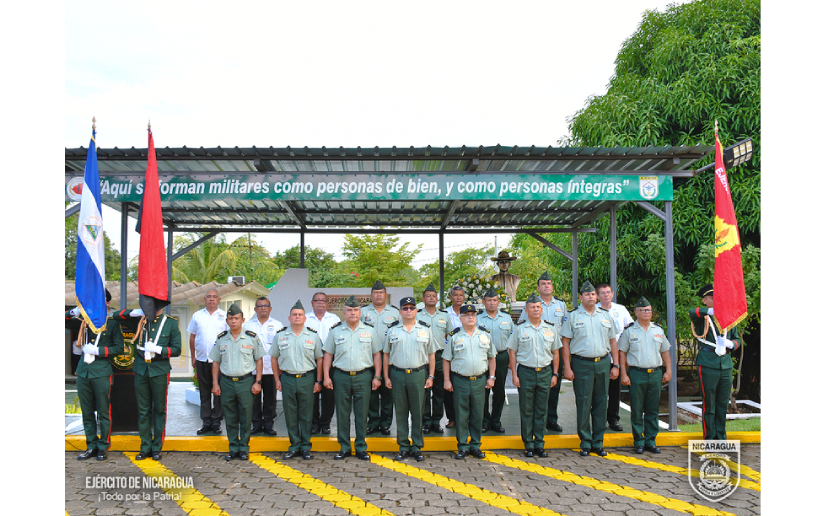 En representación del Comandante en Jefe de las Fuerzas Militares del Ejército de Nicaragua, General de Ejército Julio César Avilés Castillo, el jefe de la Dirección de Doctrina y Enseñanza, General de Brigada Manuel Giovanni Guevara Rocha, realizó colocación de ofrenda floral ante el Busto en su honor ubicado en la ESEM, acompañado por el rector de la Universidad de Defensa de Nicaragua “4 de mayo” (UDENIC), General de Brigada Álvaro Francisco Rivas Castillo; el vicerrector de la UDENIC, Coronel Inf. DEM Santos Darío Vanegas Lanzas; el Director de la Escuela Nacional de Sargentos “Sargento Andrés Castro”, Coronel Inf. DEM Eligio Porfirio Calero Jarquín; el Director de la Escuela Superior de Estado Mayor (ESEM), Coronel Inf. DEM Javier Antonio Rodríguez Jiménez; el segundo jefe de la Dirección de Relaciones Públicas y Exteriores, Coronel Inf. DEM Francisco Javier Dávila Guevara; el director del Centro Superior de Estudios Militares “General de División José Dolores Estrada Vado” (CSEM), Coronel Inf. DEM Lester Manuel Téllez Hernández y el jefe del Centro de Historia Militar (CHM), Teniente Coronel Inf. DEM Gustavo Adolfo Martínez Cortez.