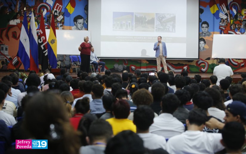 Un provechoso e importante taller sobre Arquitectura fue impartido por los escultores de la Federación de Rusia, Alexey Chebanenko y Andrey Biely, en el Auditorio Fernando Gordillo de la Universidad Nacional Autónoma de Nicaragua (UNAN-Managua).