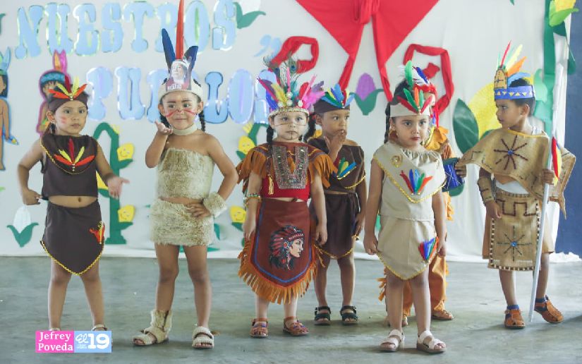 Más de 80 niños de educación inicial del Colegio Público Nicarao, celebraron este lunes una pasarela con trajes autóctonos de Nicaragua, en saludo al Día de la Resistencia Indígena, Negra y Popular.
