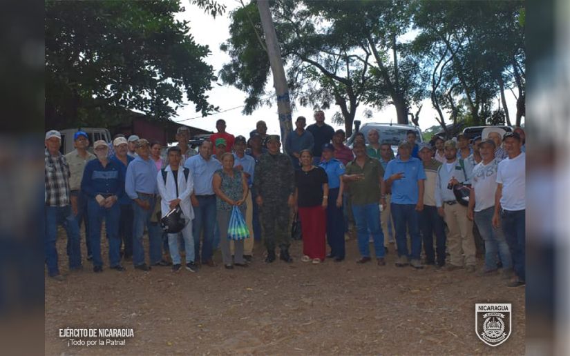 El Ejército de Nicaragua consecuente con el lema de que “Somos el Pueblo mismo uniformado trabajando en su propio beneficio”, el 9 y 10 de octubre de 2025, a través del jefe del 6 Comando Militar Regional, Coronel Inf. DEM Osmín Edgardo García, acompañado por el jefe del Estado Mayor, Coronel Inf. DEM Rodolfo Antonio González, participó en reunión con autoridades municipales, comerciantes, transportistas y 510 productores de los municipios de Muy Muy, Matiguás, Río Blanco y Esquipulas, departamento de Matagalpa y de la Comunidad de Abisinia, municipio de Jinotega, departamento de Jinotega, con el objetivo de evaluar y escuchar sus planteamientos relacionados al fortalecimiento del Plan Permanente de Seguridad en el Campo, Plan de Protección y Seguridad de la Cosecha Cafetalera Ciclo Productivo 2025-2026, Lucha Contra el Abigeato y el Plan de Protección de los Recursos Naturales y el Ambiente.