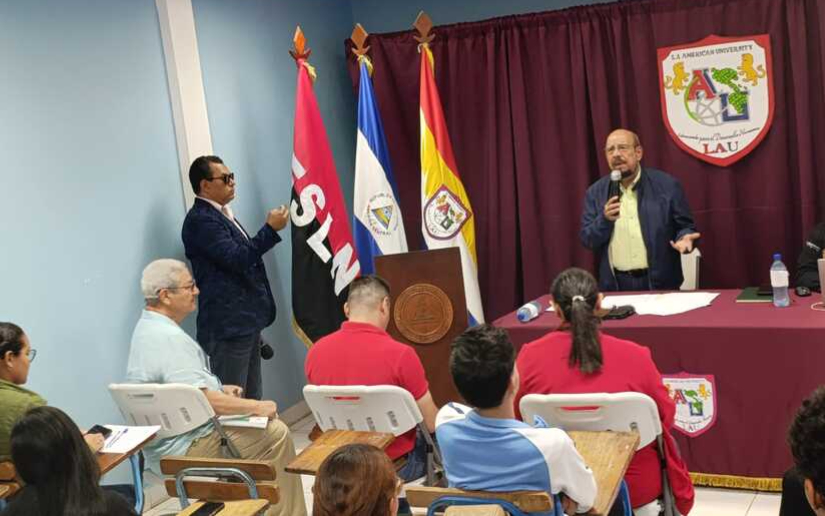 La conferencia titulada “Insurrección Popular Sandinista: Estrategia del FSLN y triunfo del pueblo” fue impartida por el diputado Edwin Castro ante estudiantes y docentes de La American University (LAU), como parte del ciclo de presentaciones que se lleva a cabo en diversas universidades, tanto públicas como privadas.