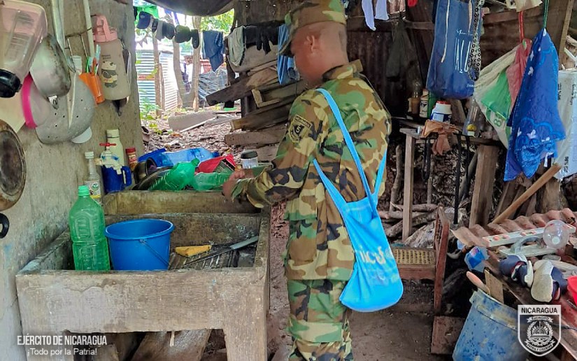 El Ejército de Nicaragua consecuente con el lema de que “Somos el Pueblo mismo uniformado trabajando en su propio beneficio”, del 14 al 17 de octubre de 2025, a través del 5 Comando Militar Regional, en coordinación con el Ministerio de Salud (MINSA), participó en jornada de abatización en diferentes barrios del municipio de Juigalpa, departamento de Chontales, con el objetivo de eliminar criaderos de mosquitos trasmisores del dengue y otras enfermedades.