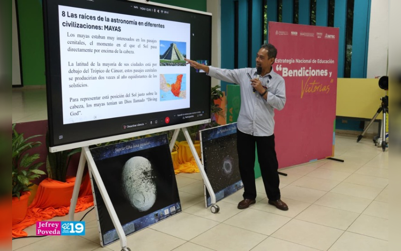 En el marco de la implementación de la Estrategia Nacional de Educación “Bendiciones y Victorias” 2024–2026, el Sistema Educativo Nacional, a través de la Universidad Nacional Autónoma de Nicaragua (UNAN-Managua), realizó la conferencia “Historias del cielo: constelaciones, mitos y ciencia desde Nicaragua”.